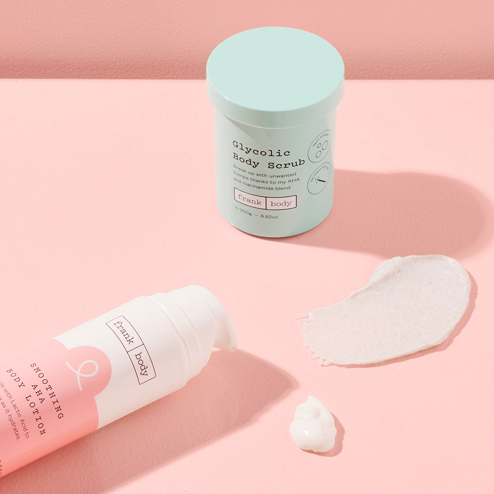 It’s time to drop some acid with my Acid Heroes Kit. Featuring my best selling Glycolic Body Scrub and Smoothing AHA Body Lotion, this breakout-busting duo combines chemical and physical exfoliation to gobble up dead skin, help clear body breakouts and keratosis pilaris (KP), and hydrate at the same time. Plus, save when you buy them in a kit. Say goodbye to strawberry skin.