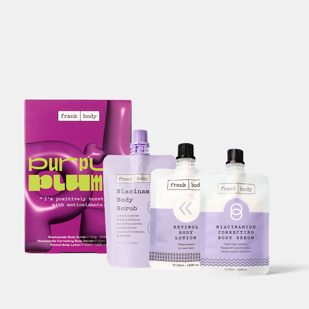 I'm known for being naughty, but I've bounced into my nice era. My Niacinamide Body Scrub clears bumps, Niacinamide Correcting Body Serum soothes redness and wrinkles, and my Retinol Body Lotion firms and smooths the body all over.
