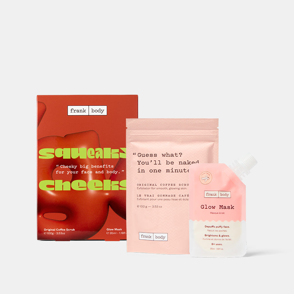 The plump power couple for cheeks of all kinds. My Original Body Scrub harnesses coffee grinds and oils for an entire body caffeine hit, while my Glow Mask is the ultra face hydrator made to reduce puffiness and get you glowing (fast).